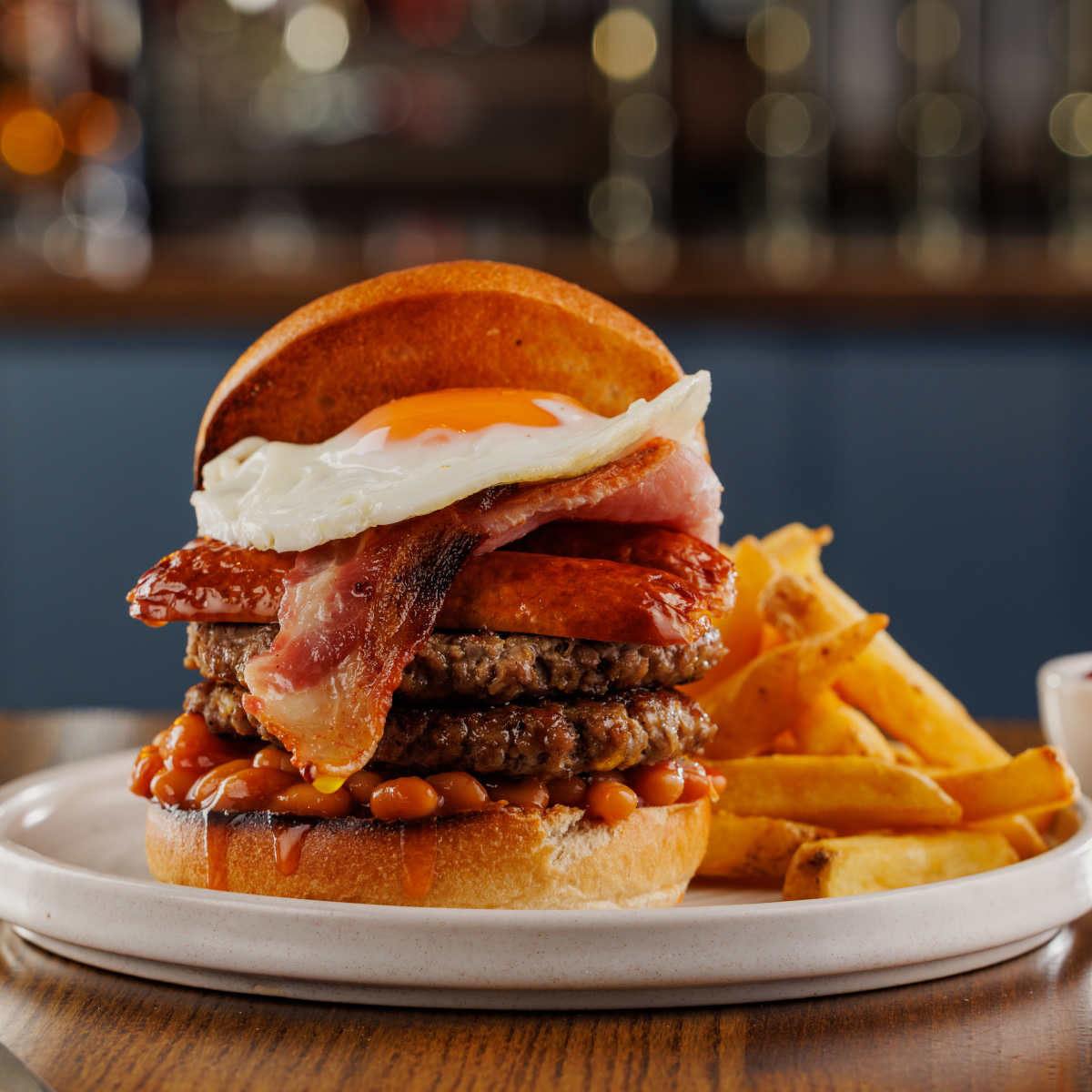Big breakfast one, two 3oz beef patties, bacon, sausage, hash browns, free-range fried egg and baked beans | 13.99 2034 kcals